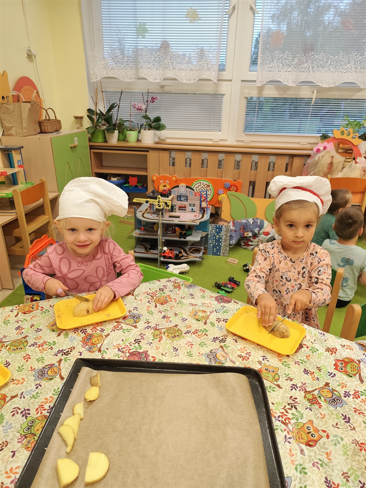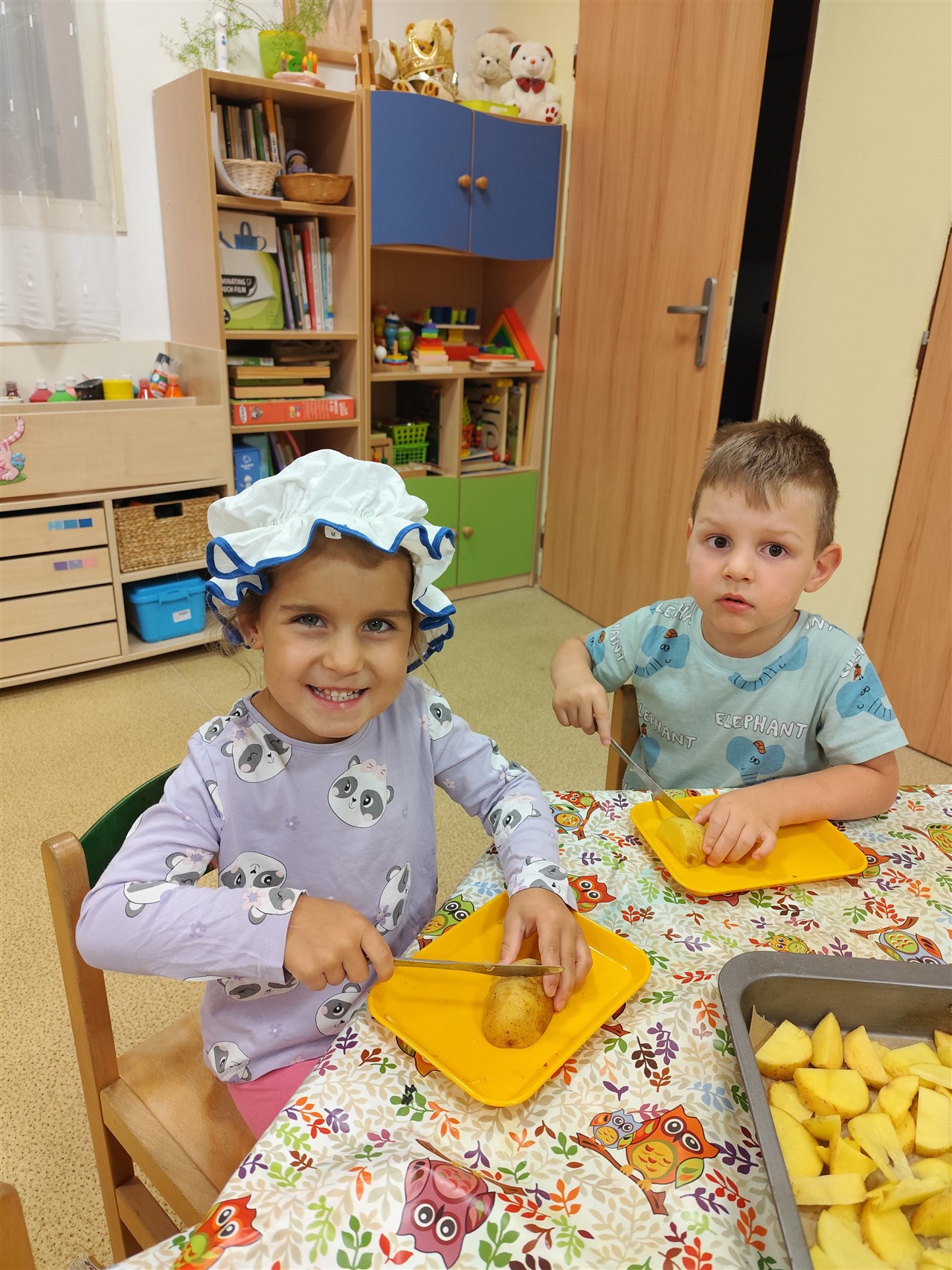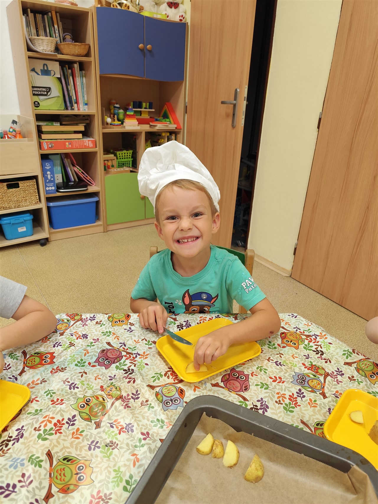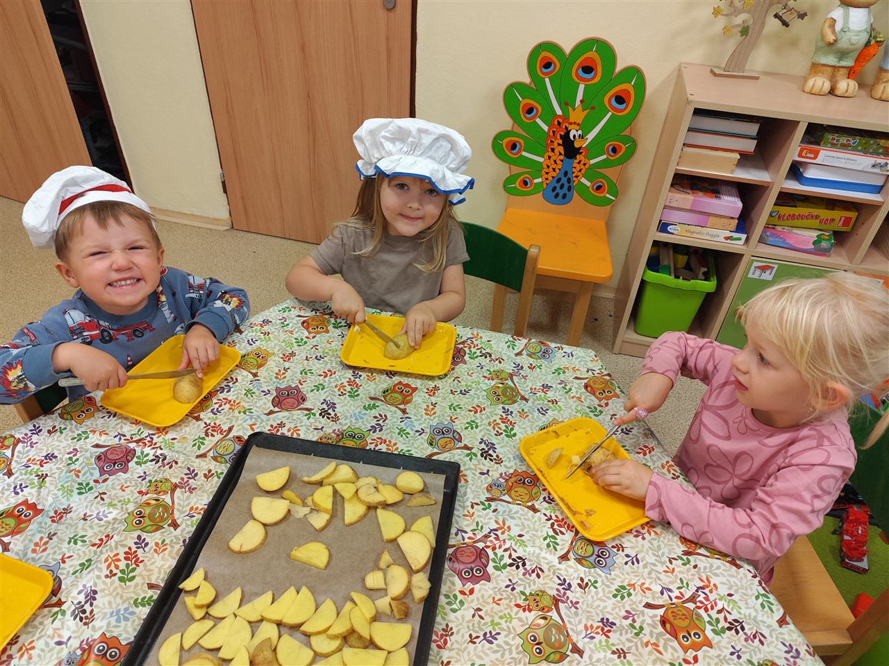 Dnes jsme se převlékli za kuchaře a udělali si školkové chipsy