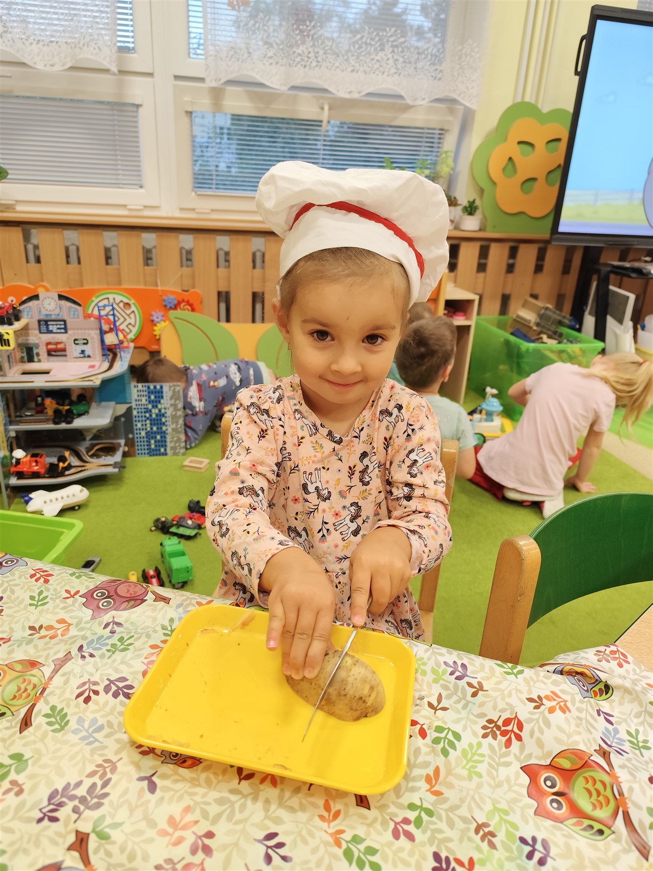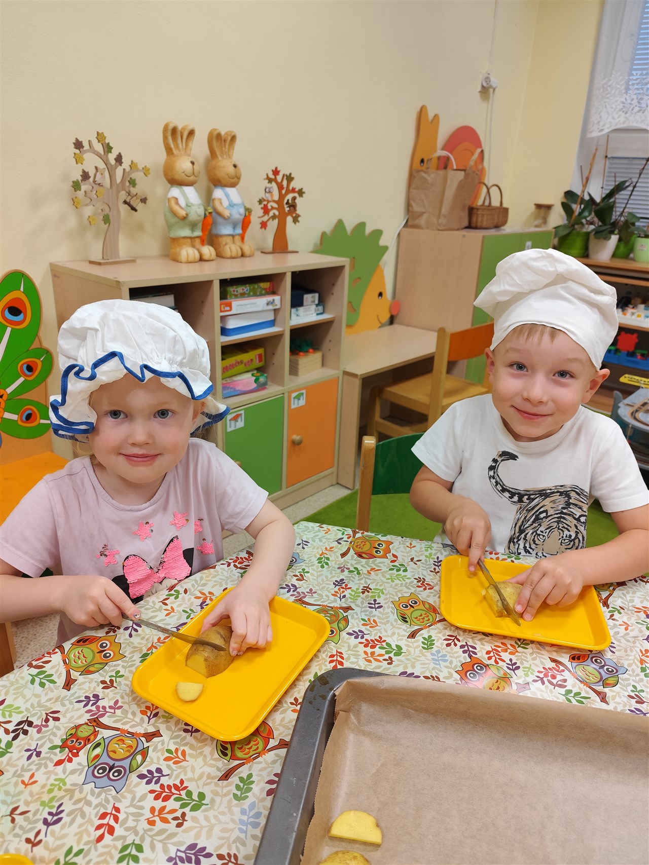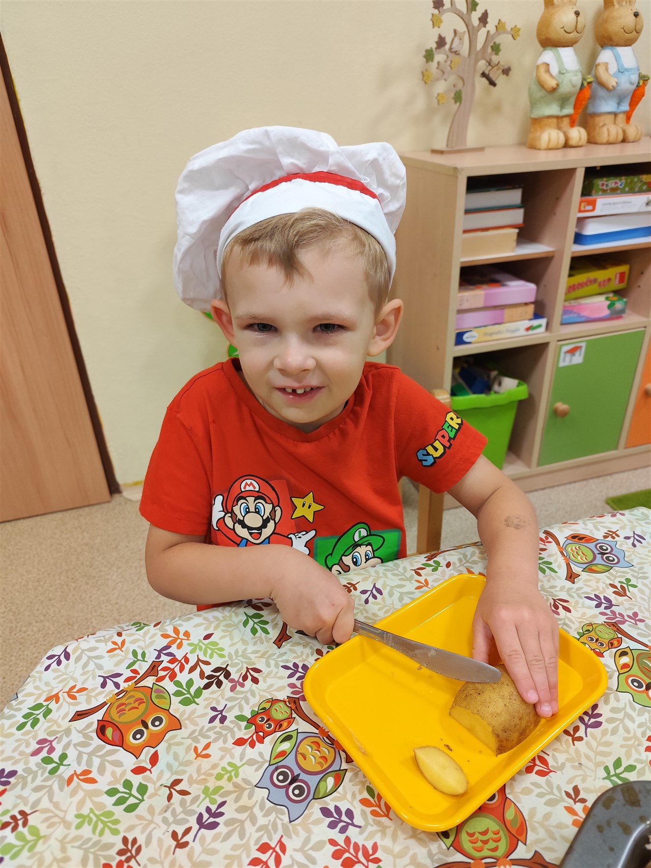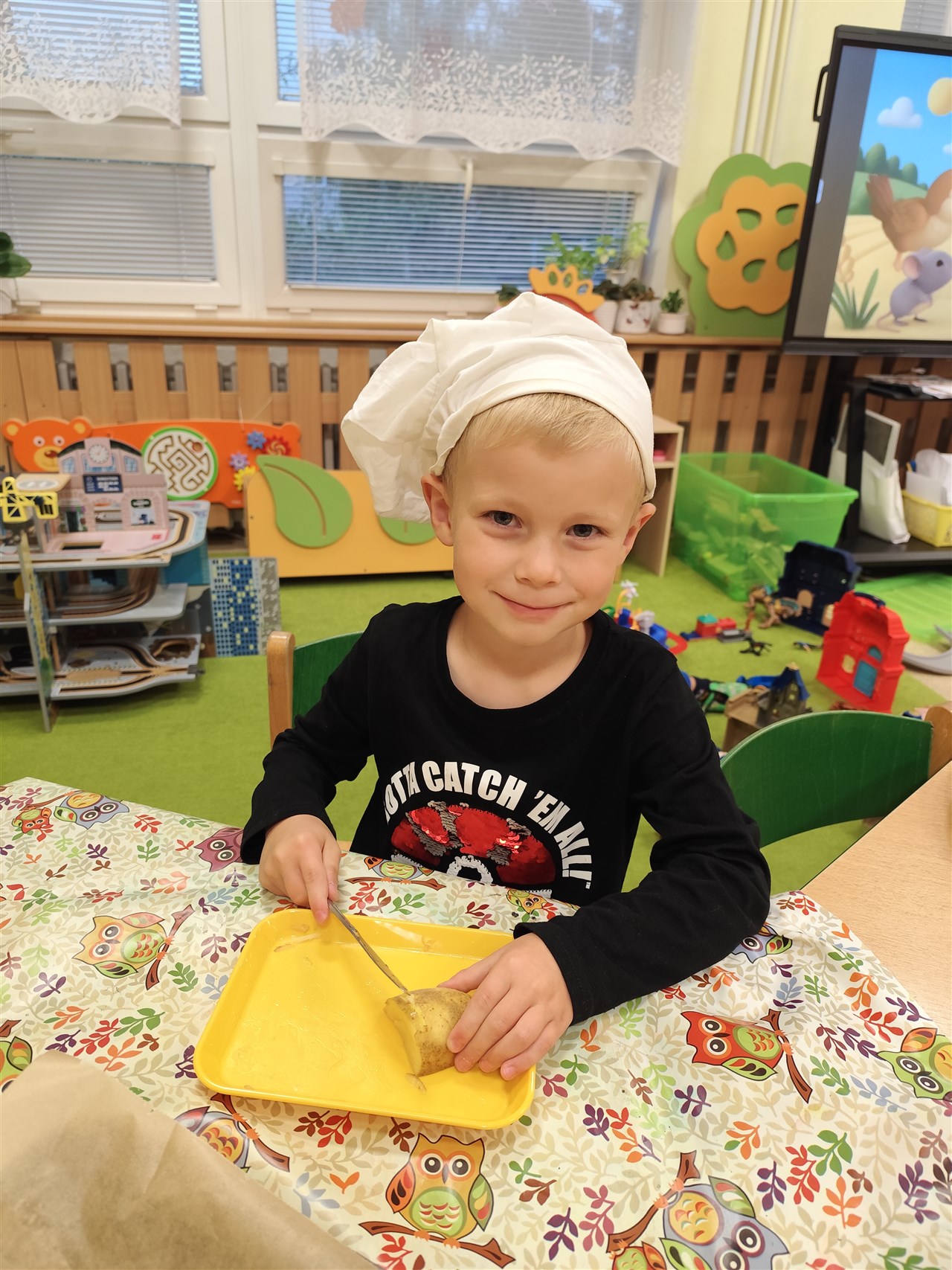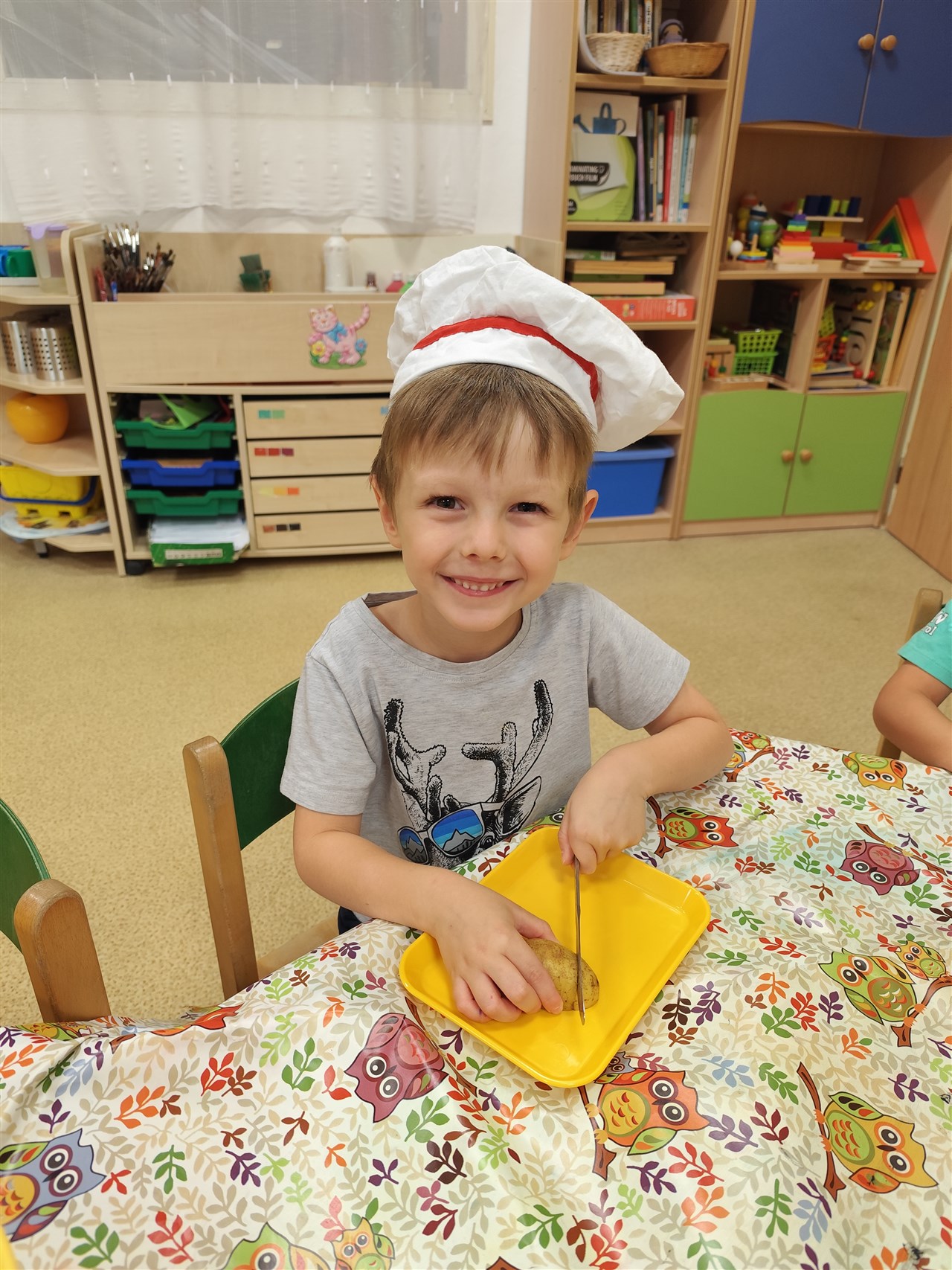 Dnes jsme se převlékli za kuchaře a udělali si školkové chipsy